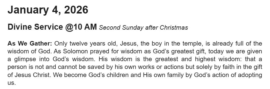 Church Office Hours:The church office will be open the following hours this week:Tuesday: 9:00-3:00 p.m.Thursday: 9:00-3:00 p.m. It would still be best to call before you stop by just to make sure someone is there!
