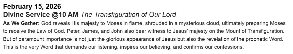 Guest Speaker: Rev. Michael SchutzMany voices compete for our attention, but above all, listen to the voice of Jesus and hear what He’s done for you (Matthew 17:1–9).