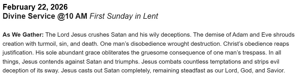 Holy Gospel: Matthew 4:1–11 Jesus is tempted by Satan in the desert.