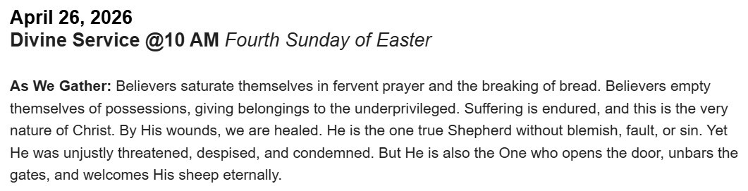 Holy Gospel: John 10:1–10 “I am the door of the sheep.” Sermon: “THEY (and WE) the Saved” (Acts 2:42–47)